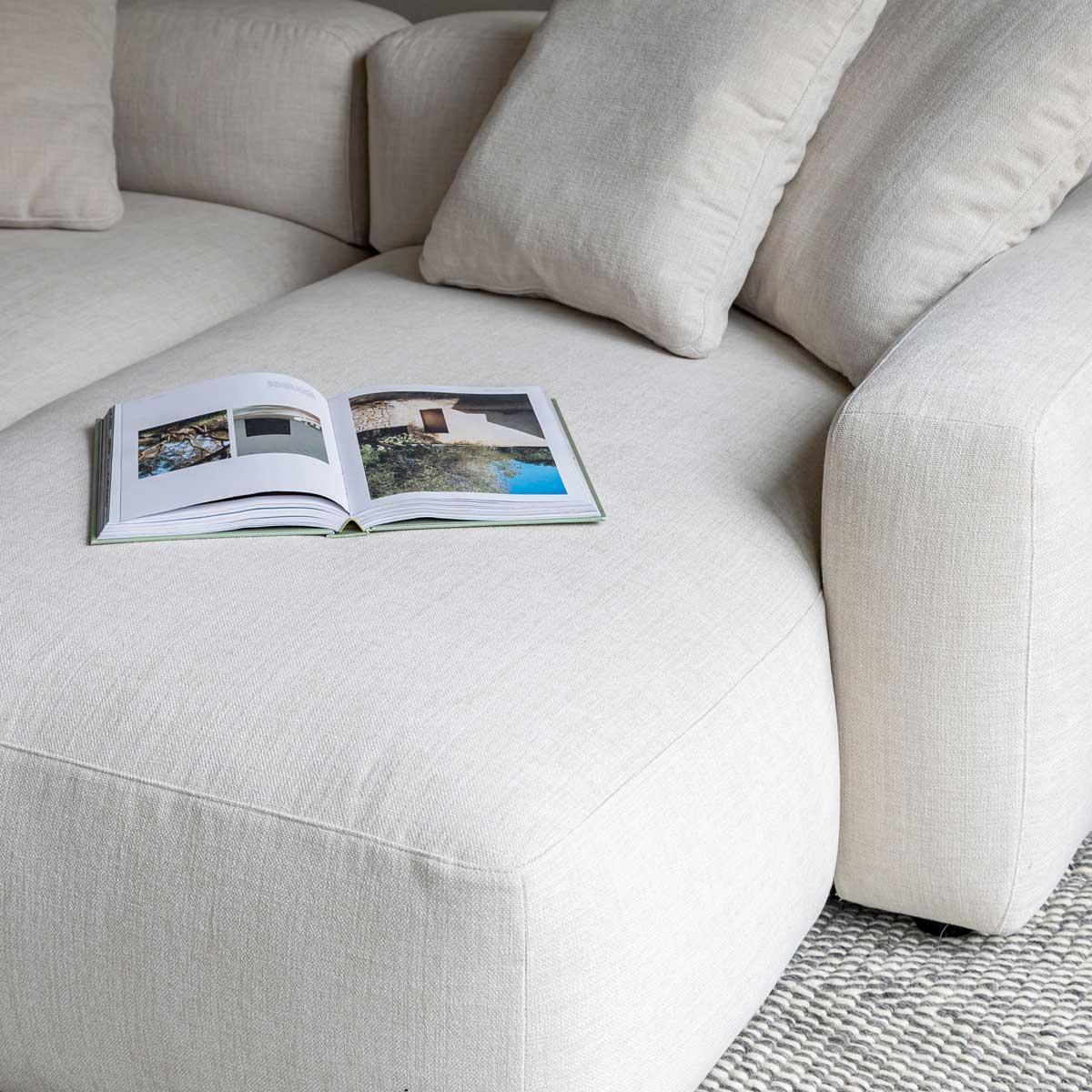 Quality in Every Detail Crafted for the rhythm of daily life, this sectional features a premium, tight-weave upholstery that offers both a soft touch and impressive durability. Underneath, a reinforced solid wood frame and high-density foam provide a supportive, structured sit that maintains its crisp lines and comfort long after the first sit.